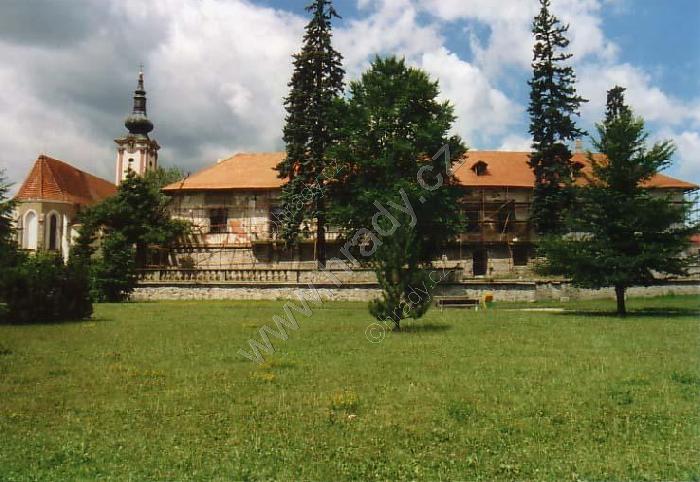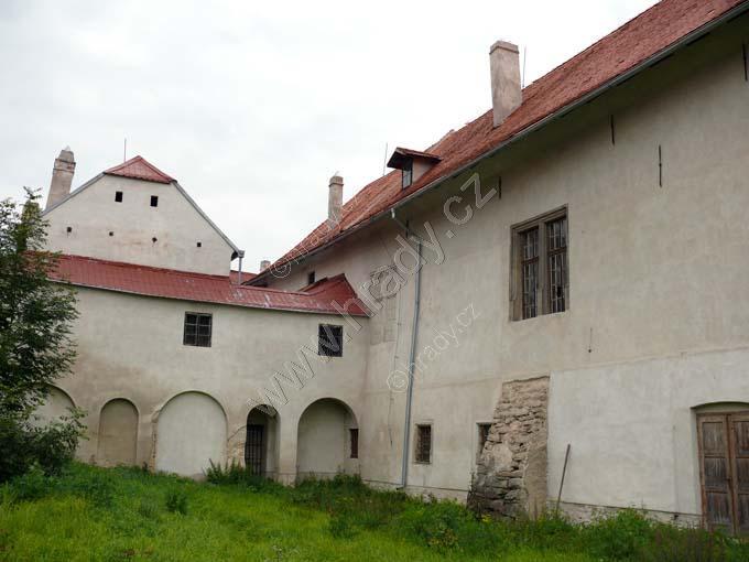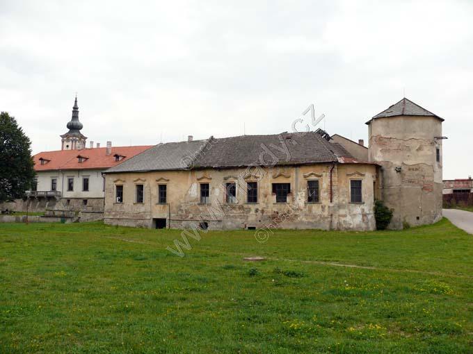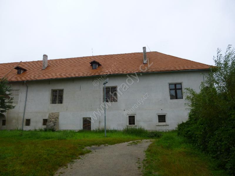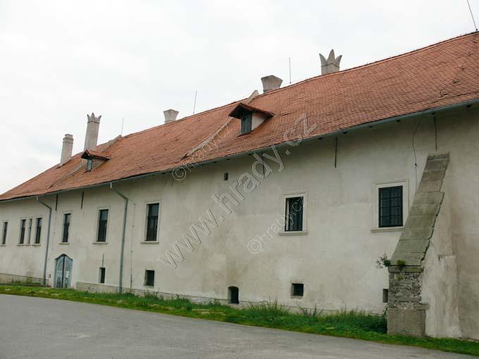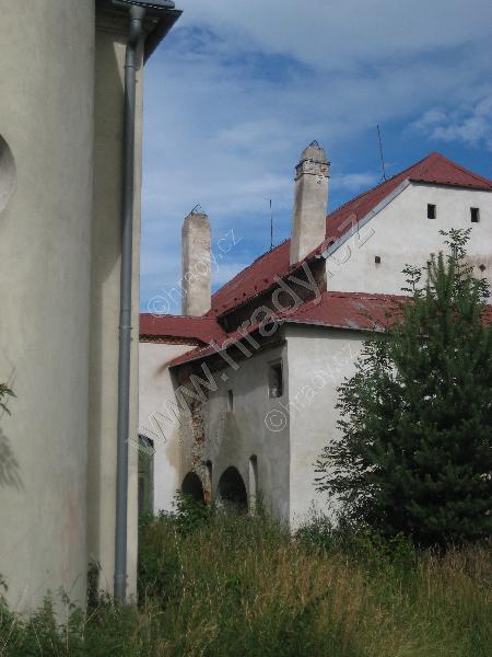 Jižní křídlo (vpravo) a část těsně sousedící s kostelem