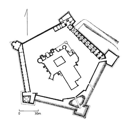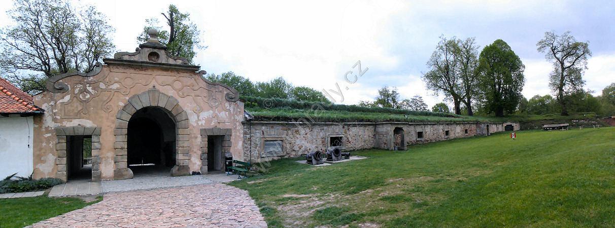 severovýchodní kurtina s kasematy a vnitřním portálem vstupní brány