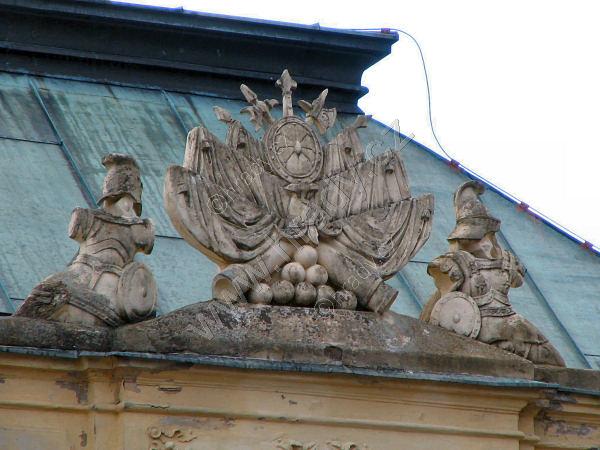 trofeje na hlavním průčelí zámku