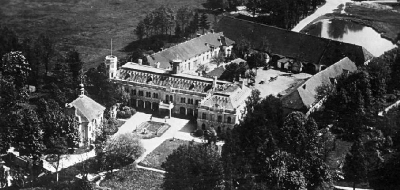 zámecký areál na historickém leteckém snímku