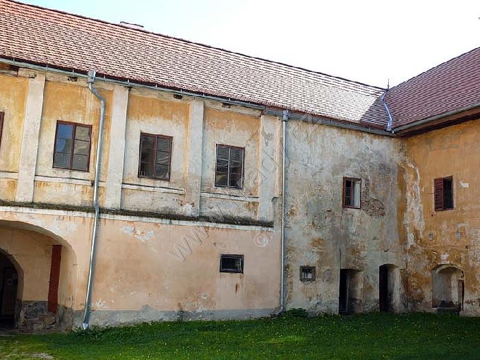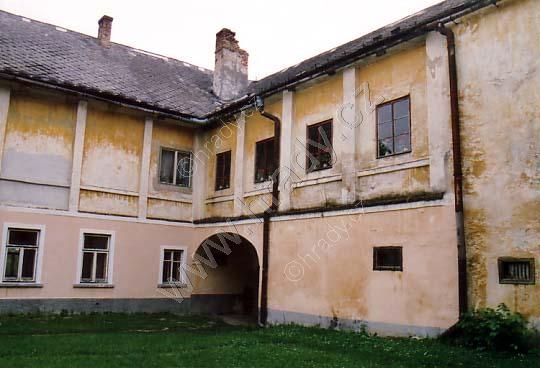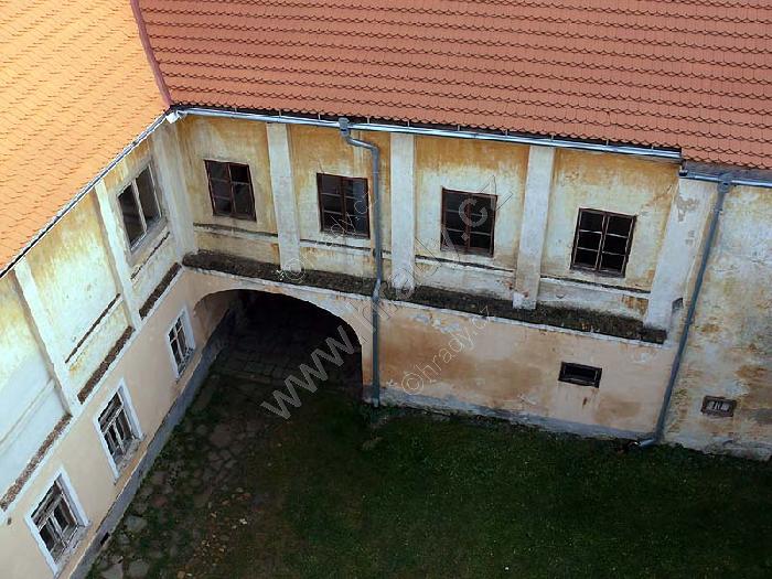 Jihovýchodní kout nádvoří se zazděnými arkádami v roce 2003.