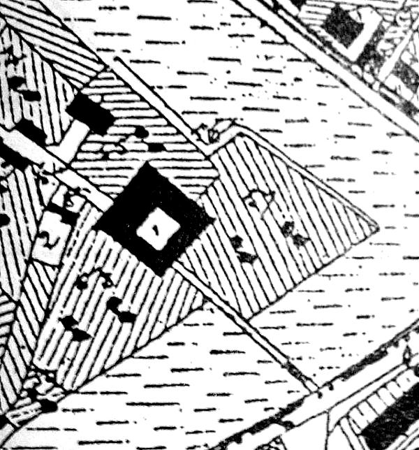 vstupní přístavek na severu. Zámek se nacházel v jv. sousedství domu.