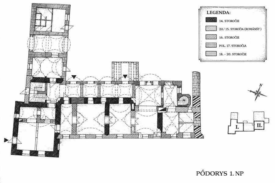 Kaštiel I, půdorys přízemí (1. nadzemní podlaží)