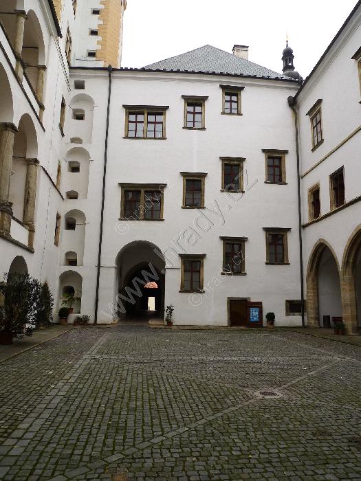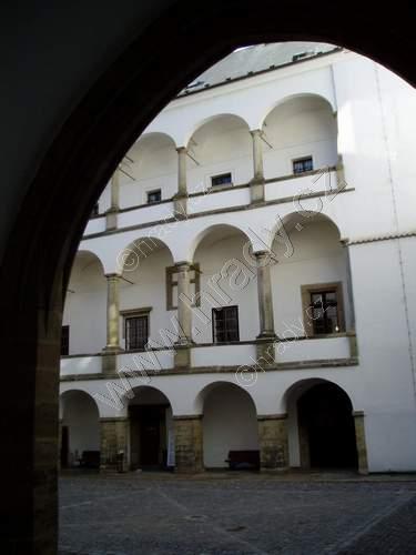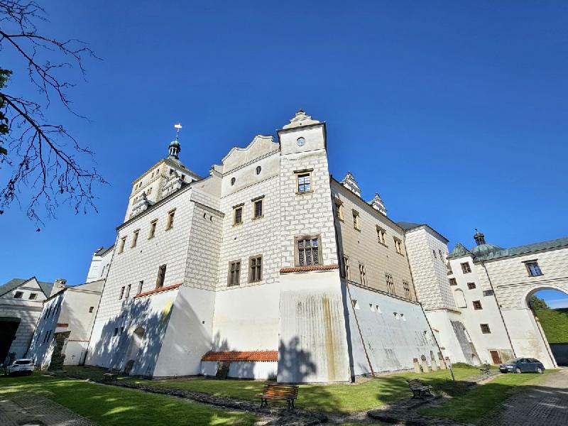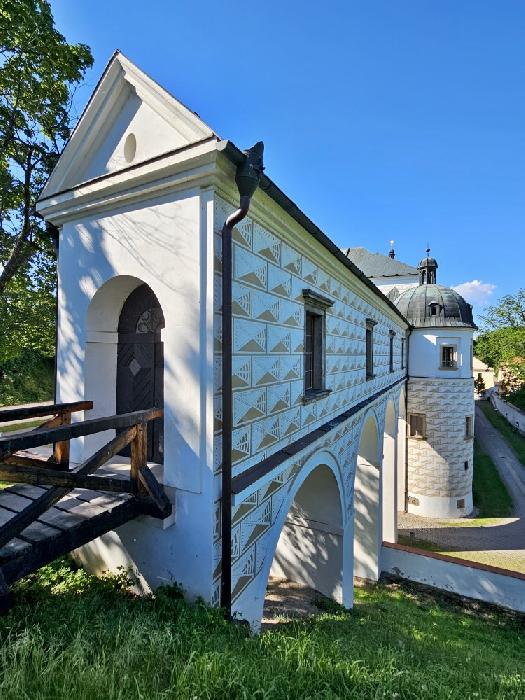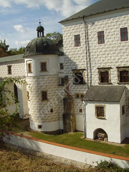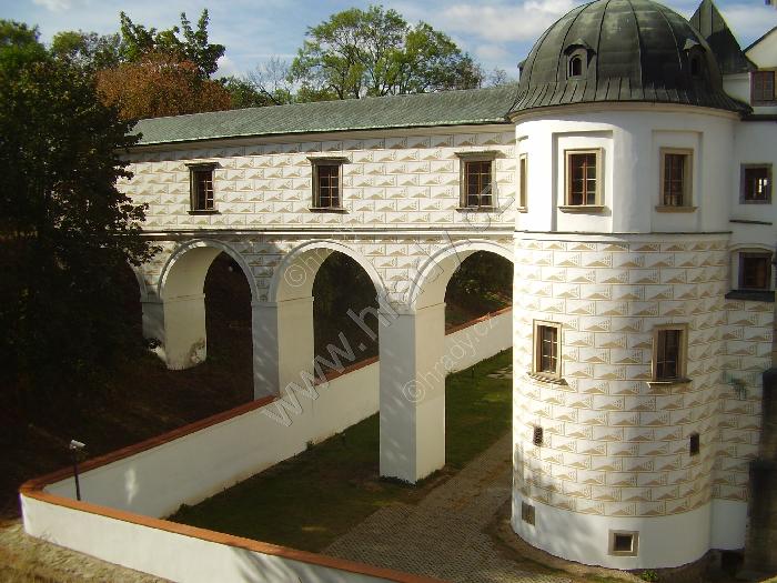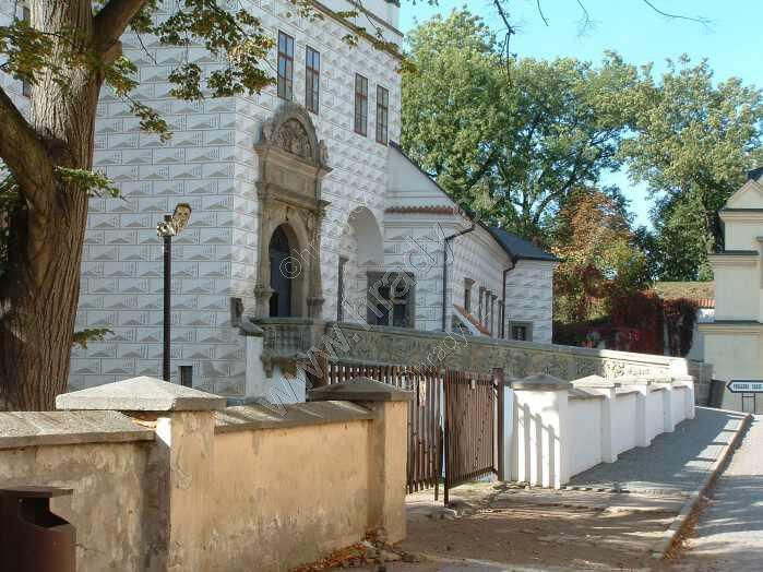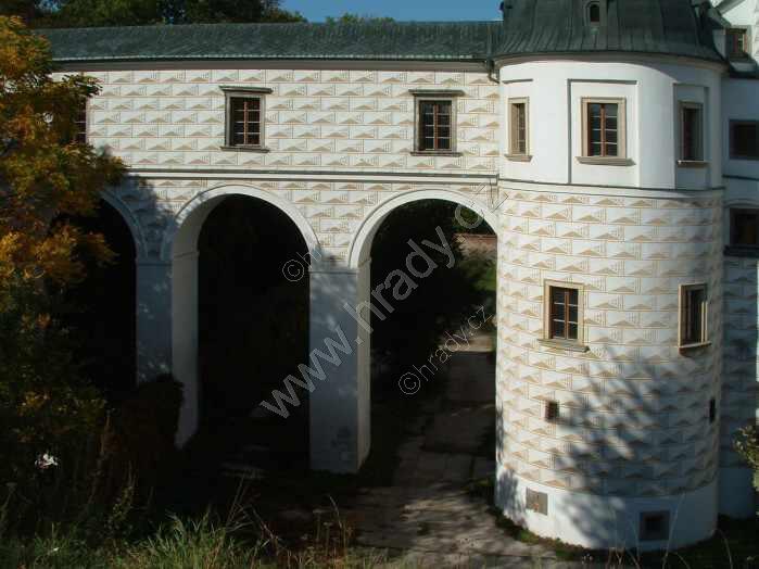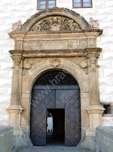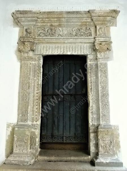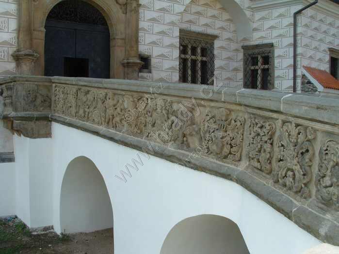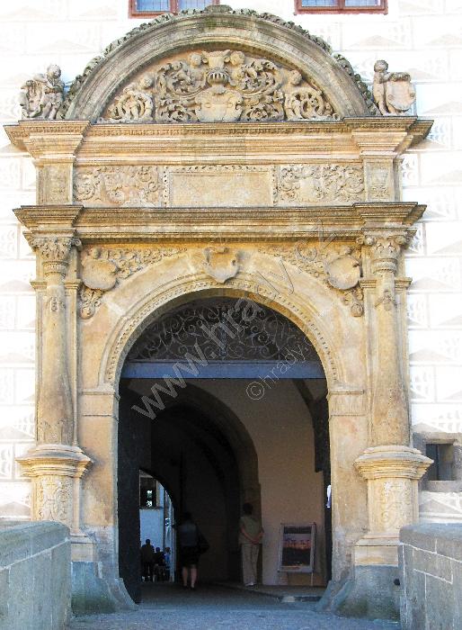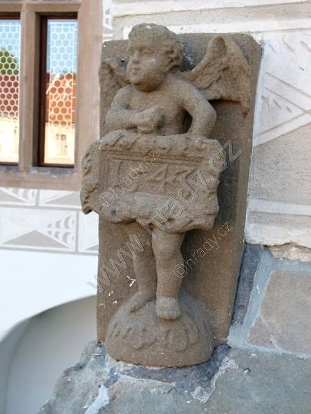 renesanční soška anděla nesoucího letopočet 1543 u hlavní brány do zámku