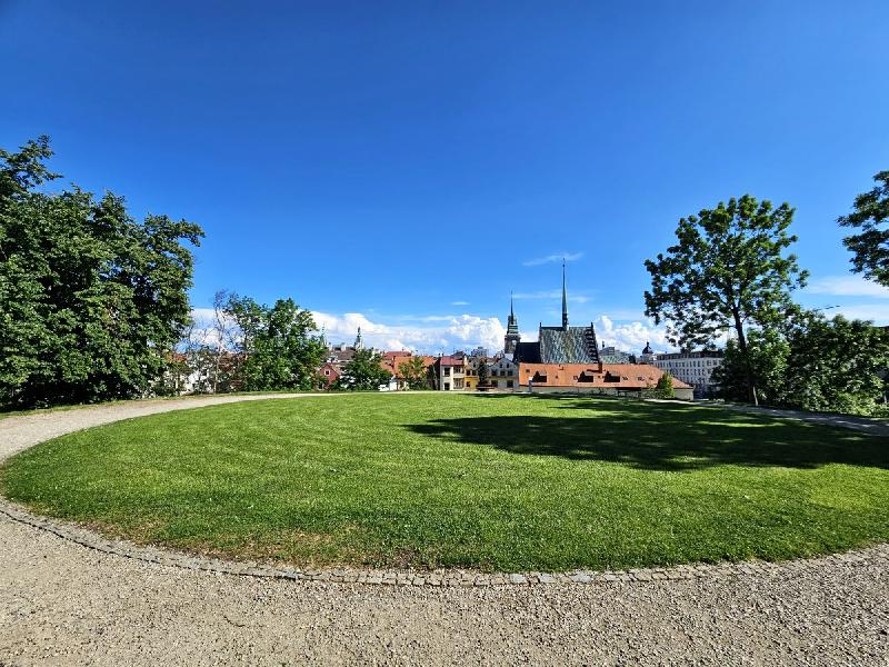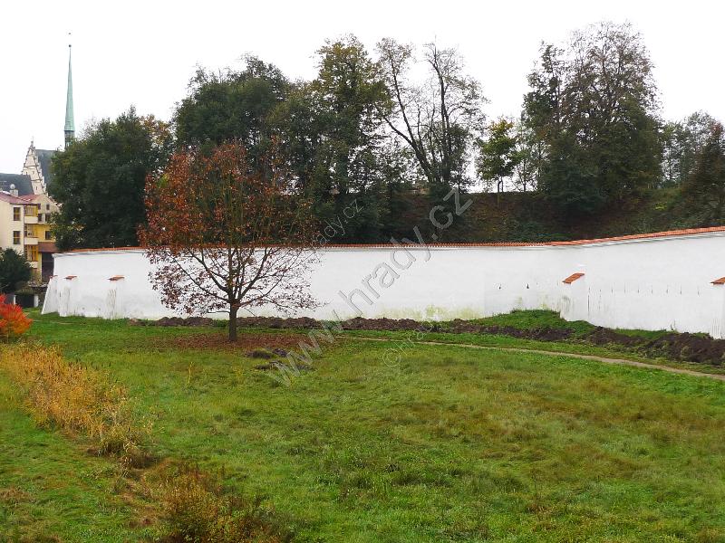 Jihovýhodní rondel obrácený vůči historickému jádru města s kostelem sv. Bartoloměje a Zelenou branou