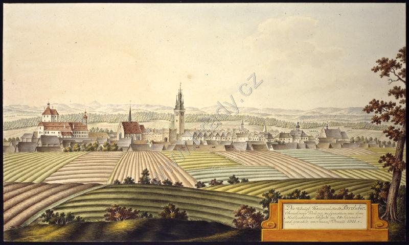 Město a zámek na obraze I.A.Venuta z roku 1811