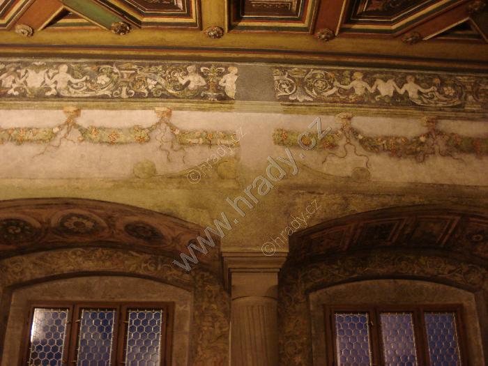 iluzívní renesanční malba s průzory nad oknem kde mají provzdušnit místnost