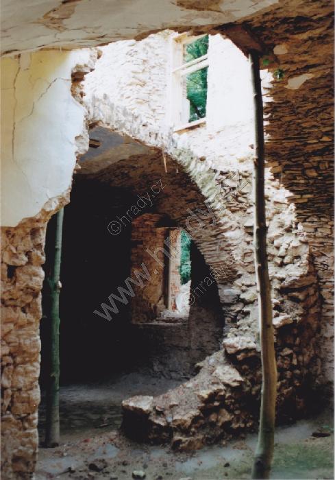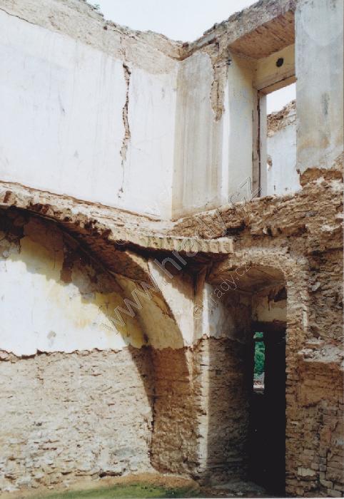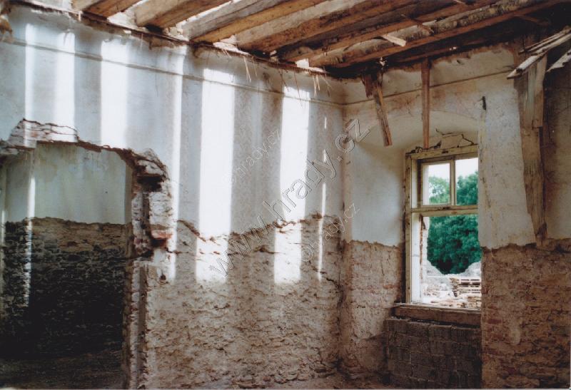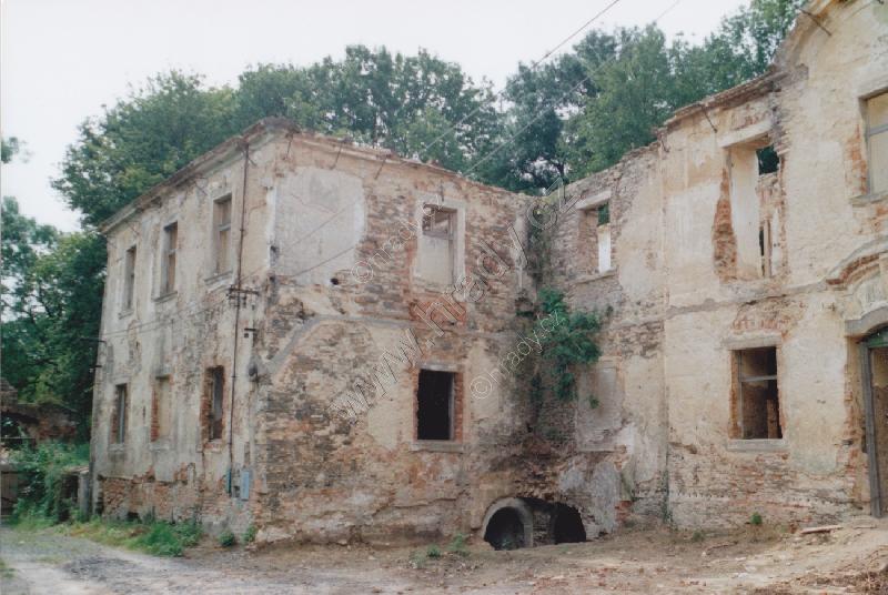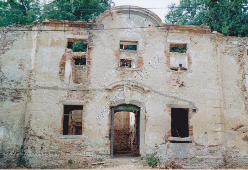 Pohled na velmi zchátralý zámek