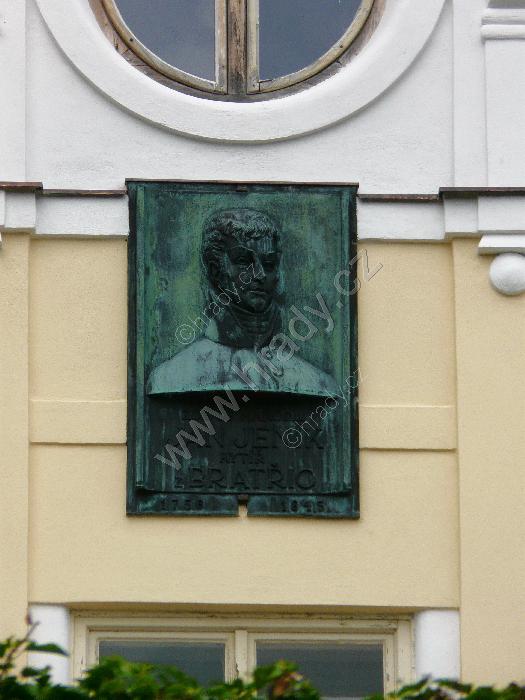 štít s pamětní deskou rytíře Jana Jeníka z Bratčic