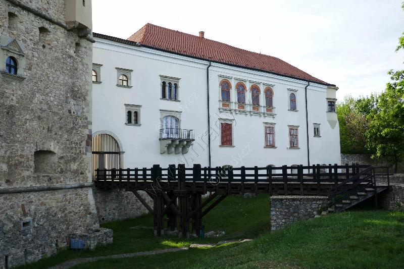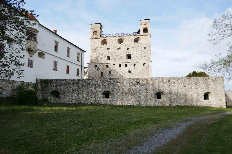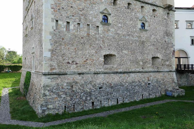 SZ nárožní bastion. Průčelní zeď je původní obvodová hradba hradu z 1. pol. 16. stol.