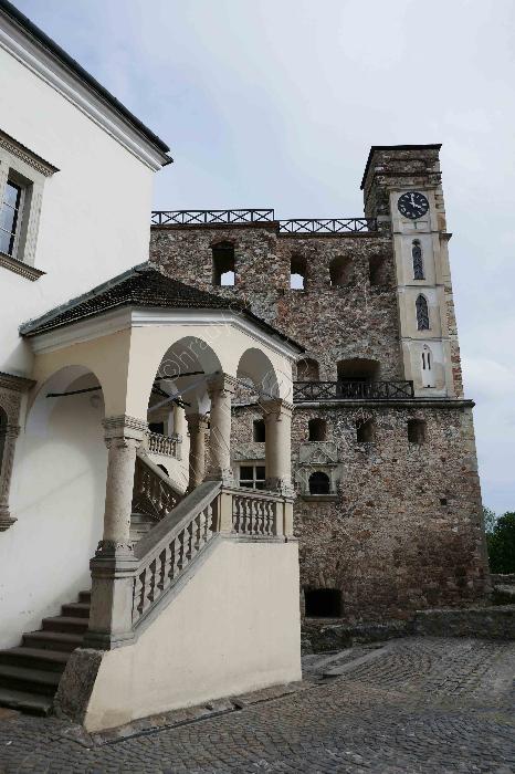 Nádvoří zámku, napravo je renesanční schodiště k věži.