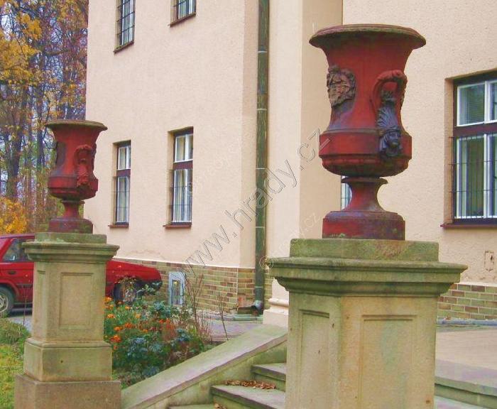 Kamenné vázy před hlavním vchodem