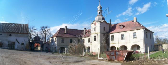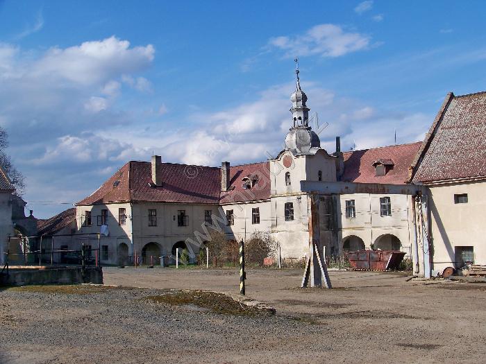Pohled na bývalý poplužní dvůr směrem od zámku