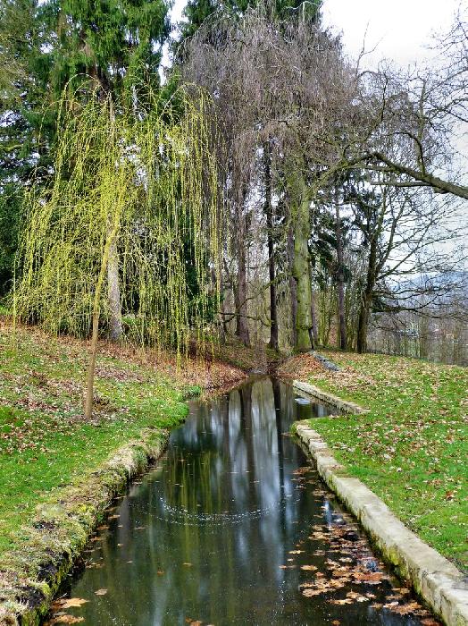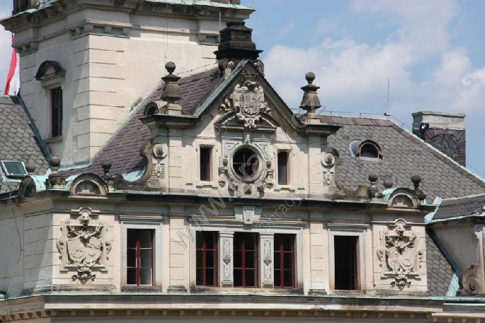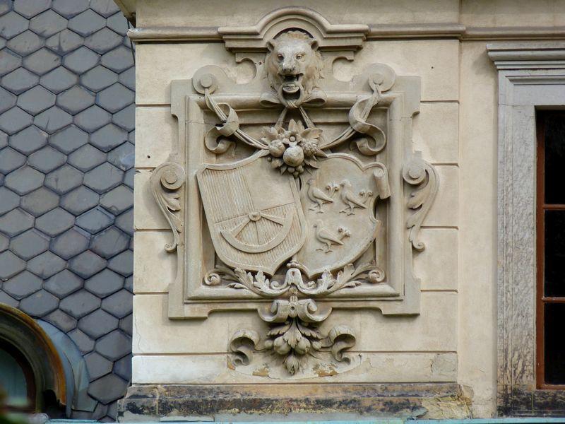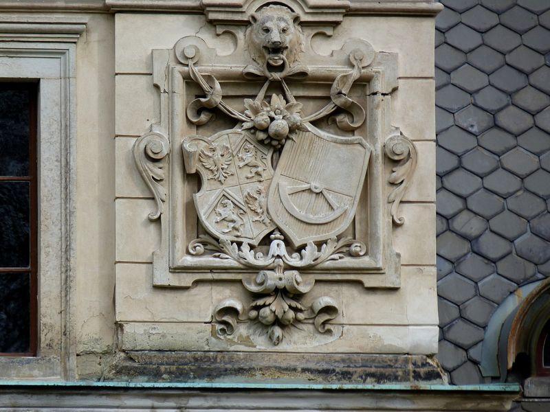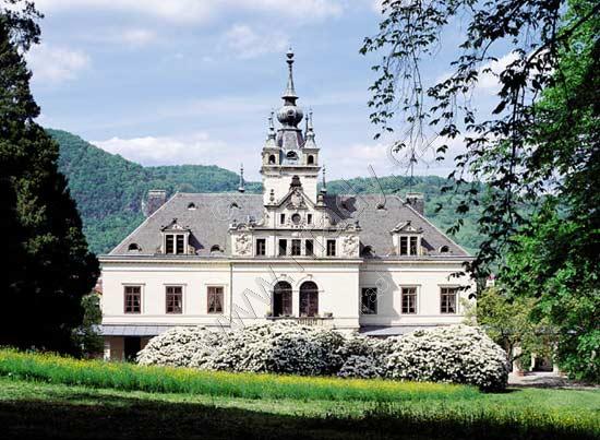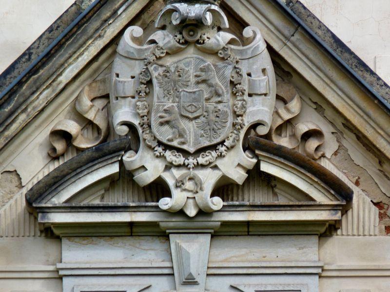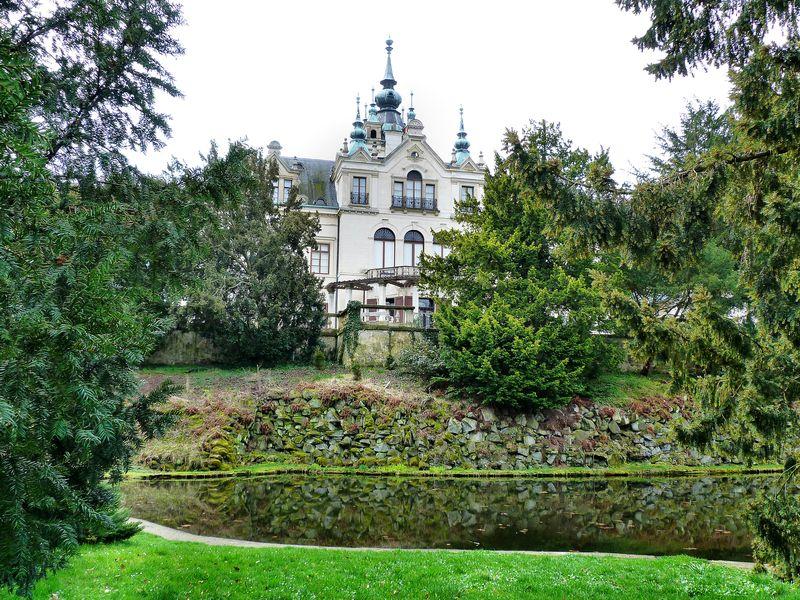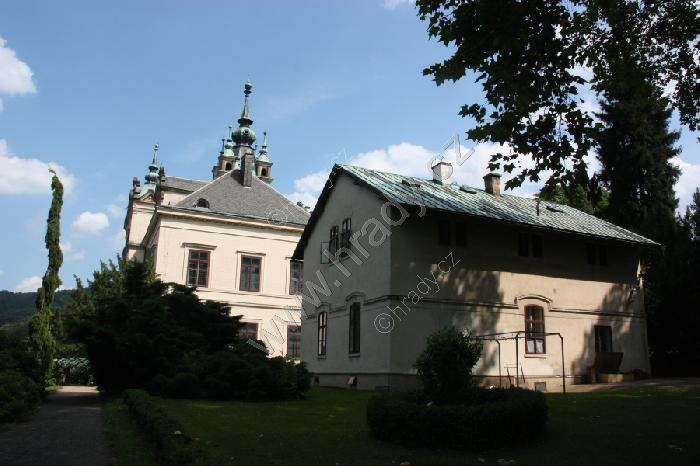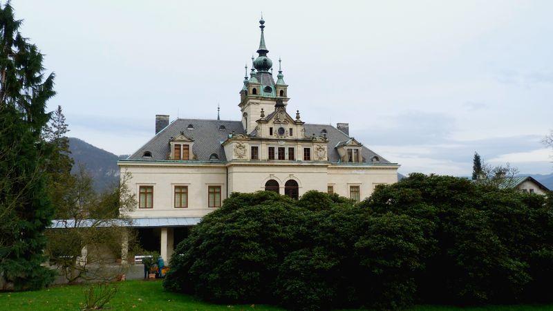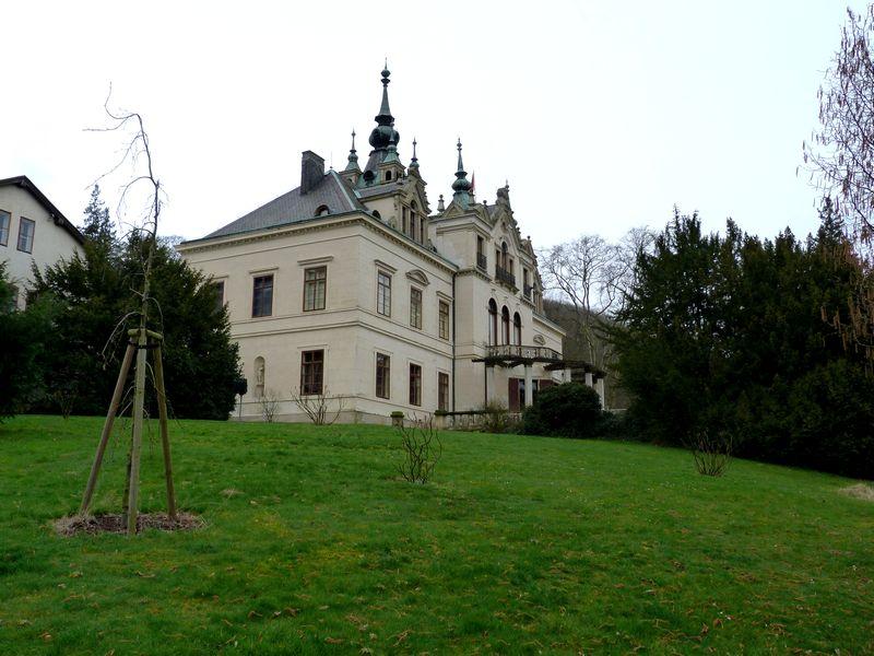 Velké Březno, plán přízemí zámku. Dvojitými šrafami značeno zdivo z doby výstavby budovy ve čtyřicátých letech 19. století, mladší zdivo neznačeno. Kresba autor.