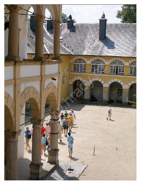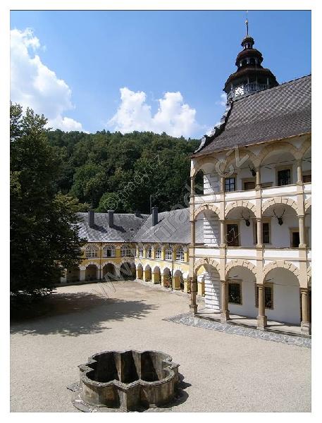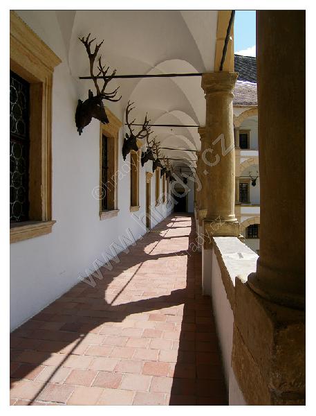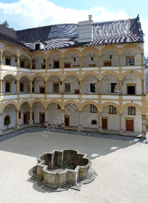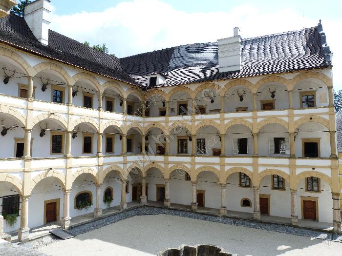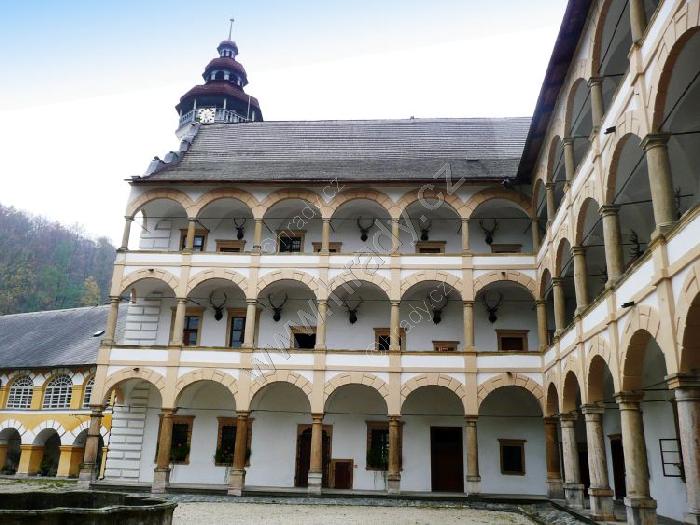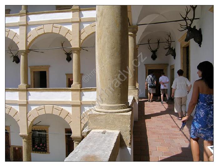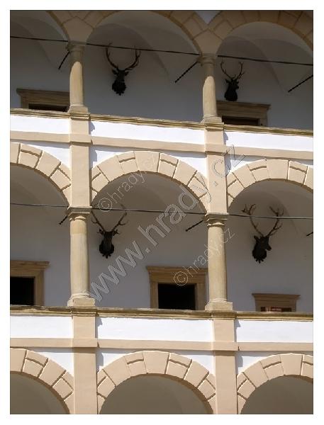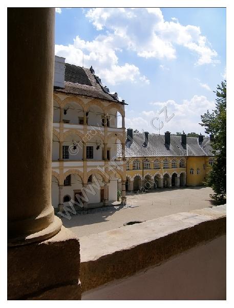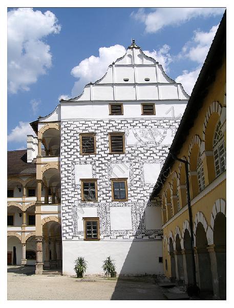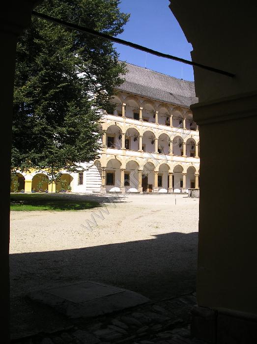 pohled od východního na západní křídlo renesančního zámku s arkádami