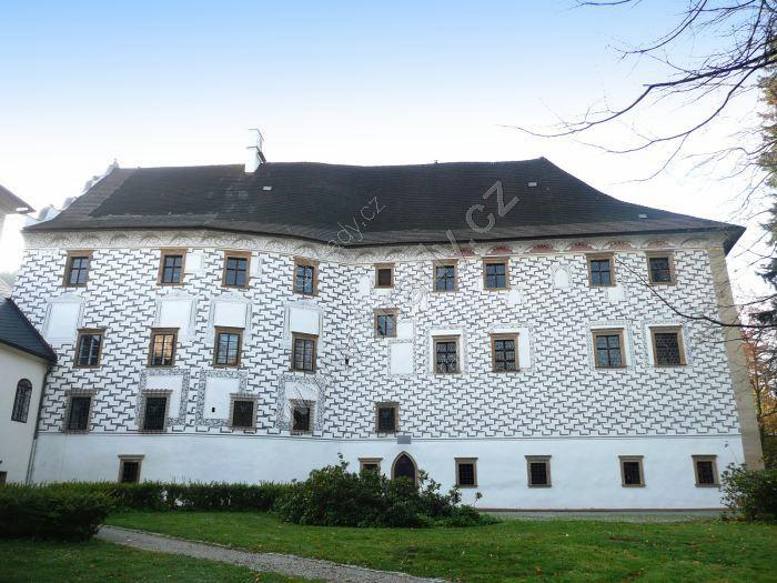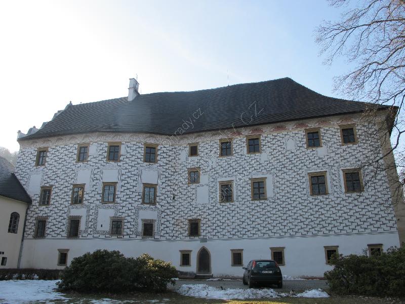 toto křídlo obsahuje ve své jižní části (levá část na snímku) i starší gotickou tvrz