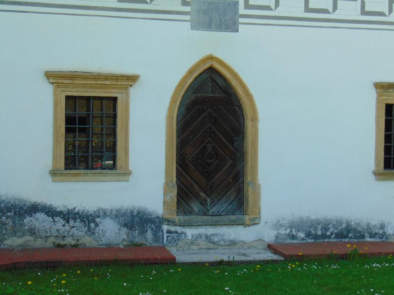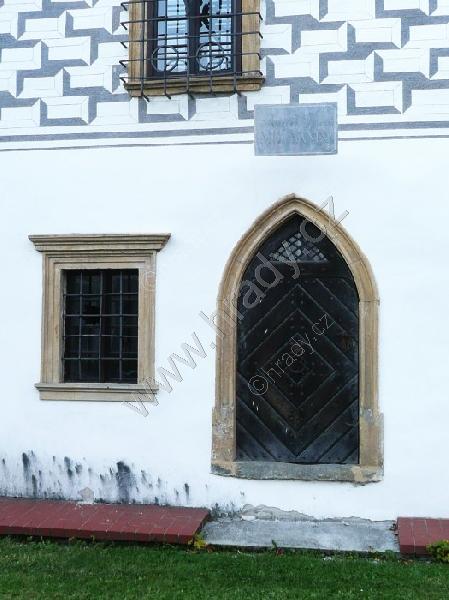 Vých.křídlo vzniklé z původní tvrze, a mající původní gotickou branku