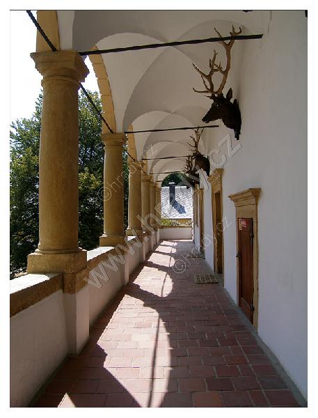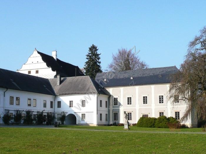průchozí trakt s průjezdem do zámeckého parku a mladší, lichtenštejnské stavení navazující na starší renesanční zámek