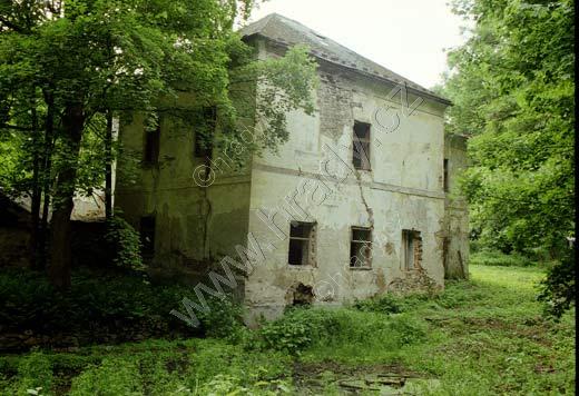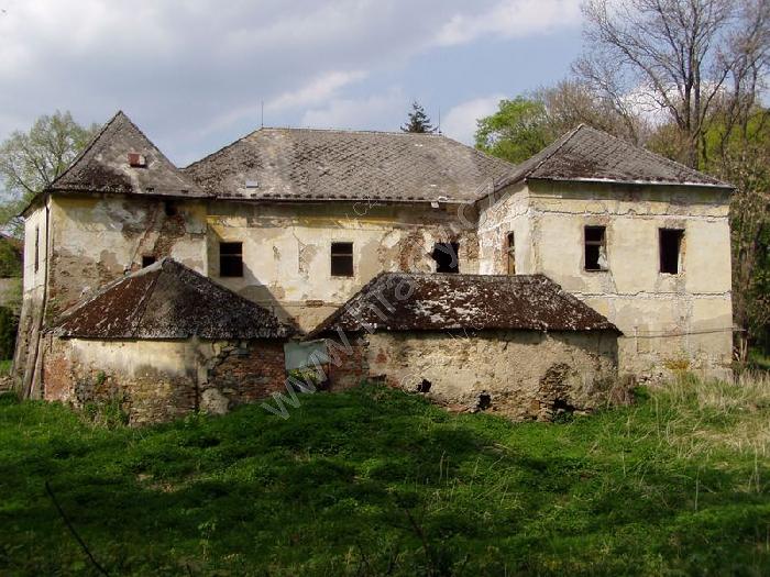 Zámek, bývalá tvrz, v pohledu přes vodní příkop