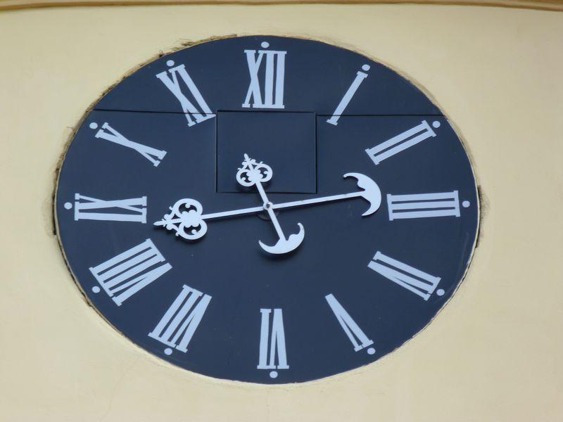staré hodiny ve štítu budovy