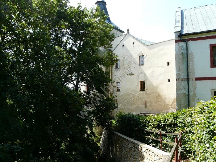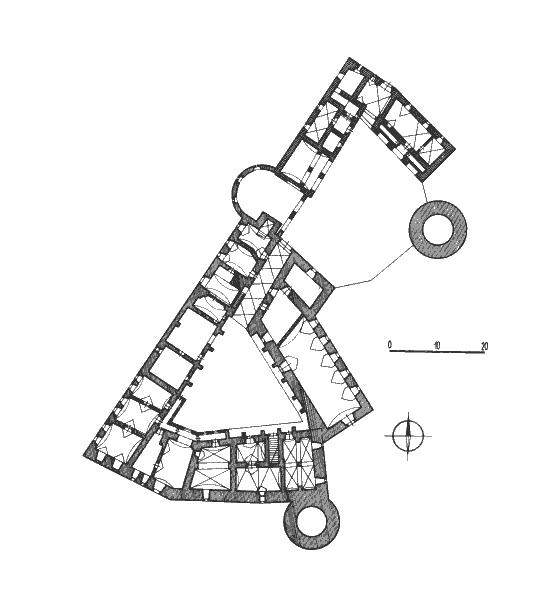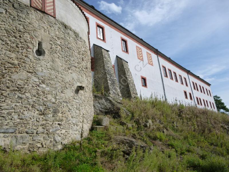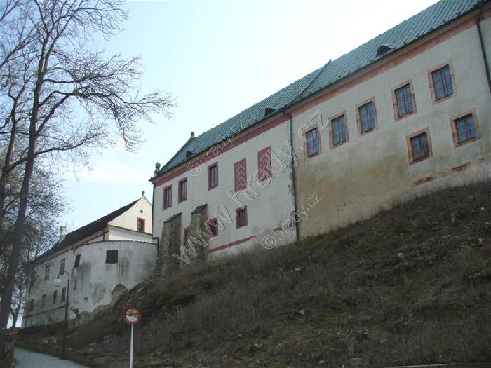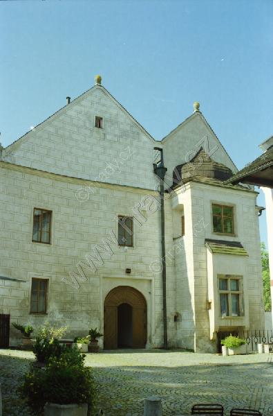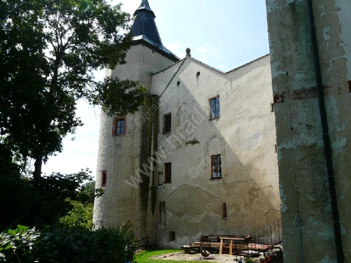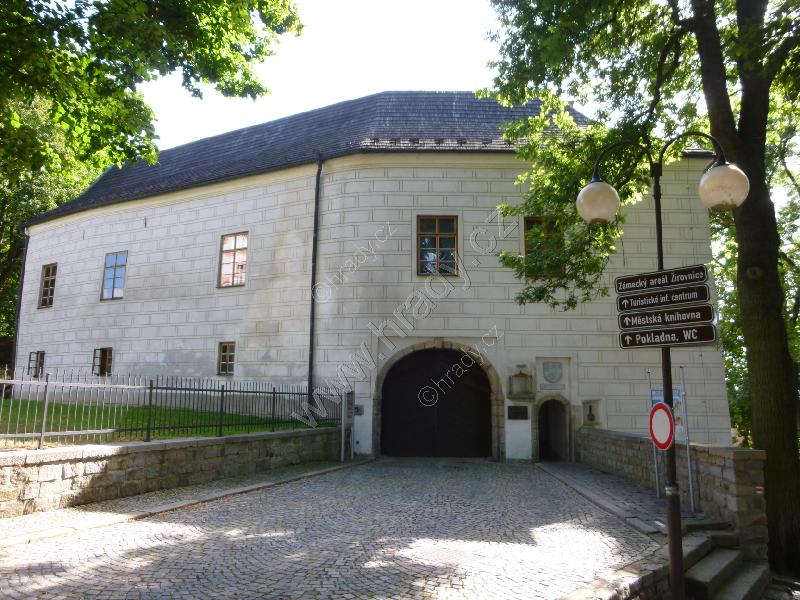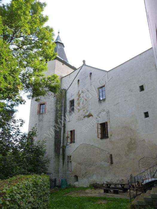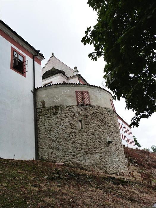 Kulatá věž vpravo byla v roce 1917 zbořena