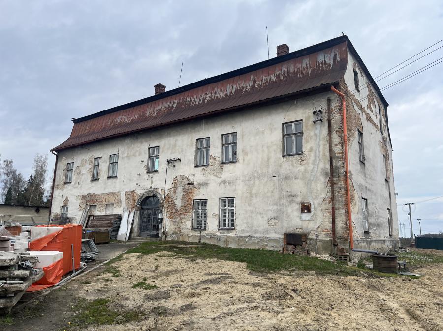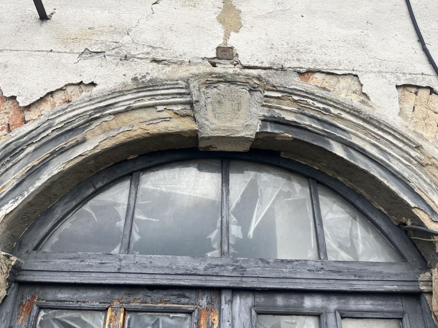 Vrcholový klenák vstupního portálu zámku má vyrytý nápis IN NOMEN DOMINI a iniciály J.(?) a M. A vročení 1817. Je silně poškozený, oproti starší fotografii je vidět značně pokročilá destrukce.