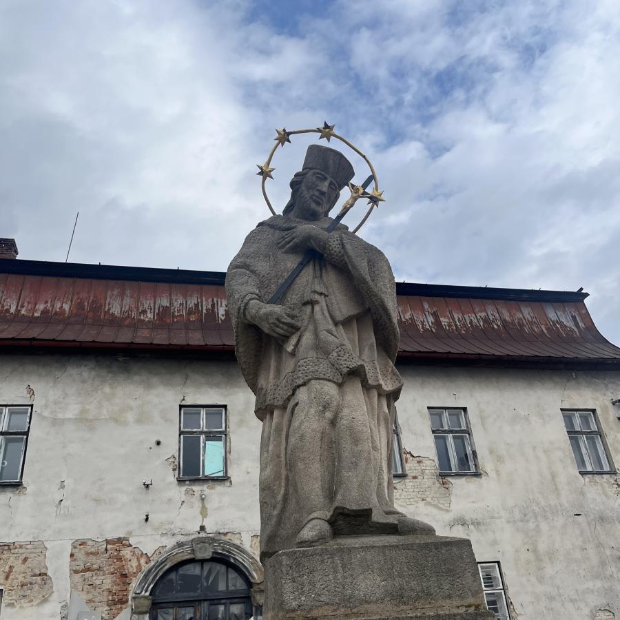 socha sv. Jana Nepomuckého před zámkem-snad pozůstatek sochařské výzdoby areálu