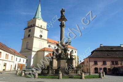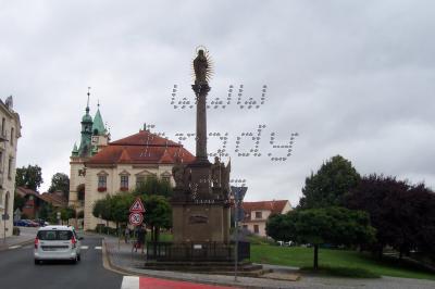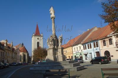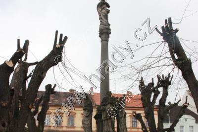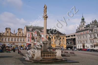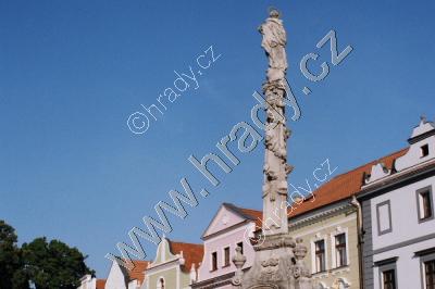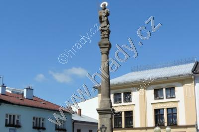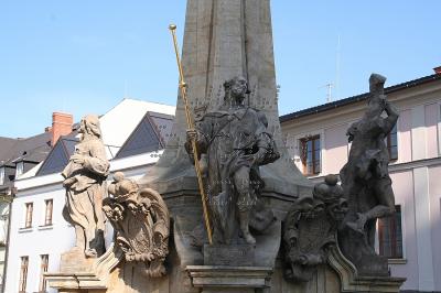 Na místě původní sochy sv. Václava ve středu náměstí postaven 1682 mariánský sloup, doplněný r. 1764 čtyřmi sochami světců, kolem balustráda s reliéfy českých patronů z r. 1882 v nárožích. Sochy nahrazeny kopiemi, ostatní části vyčištěny.