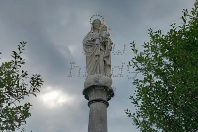 Mariánský sloup z roku 1885. Na vrcholu socha Neposkvrněné Panny Marie. Na podstavci se pozlacený reliéf sv. Cyrila a Metoděje. Sloup opraven r. 2005.