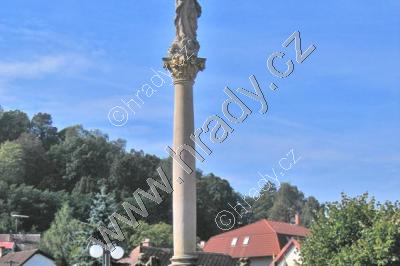 Mariánský sloup vybudoval v letech 1770–71 Josef Vilém hrabě z Nostic-Rieneck. Na sloupu Panna Marie Imaculata, na soklu sochy sv. Václava a sv. Jana Nepomuckého, reliéf sv. Floriána a erb rodu Nostitz-Rieneck.
