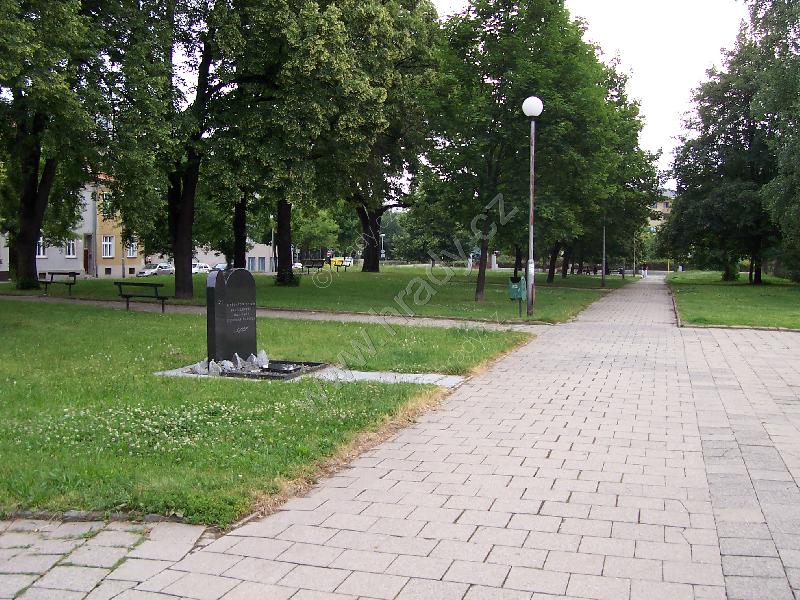 Parčík ve Studentské ulici s pomníkem