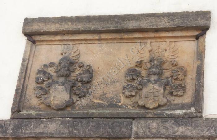 erby Valdštejnů (lvi) a Bohdaneckých z Hodkova (vodorovný žebřík)