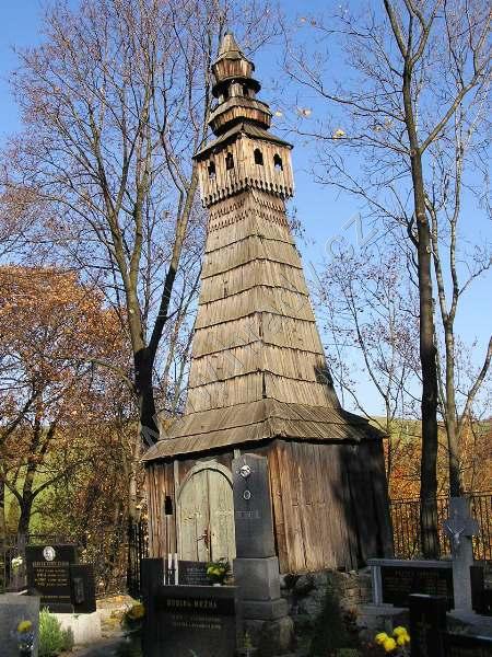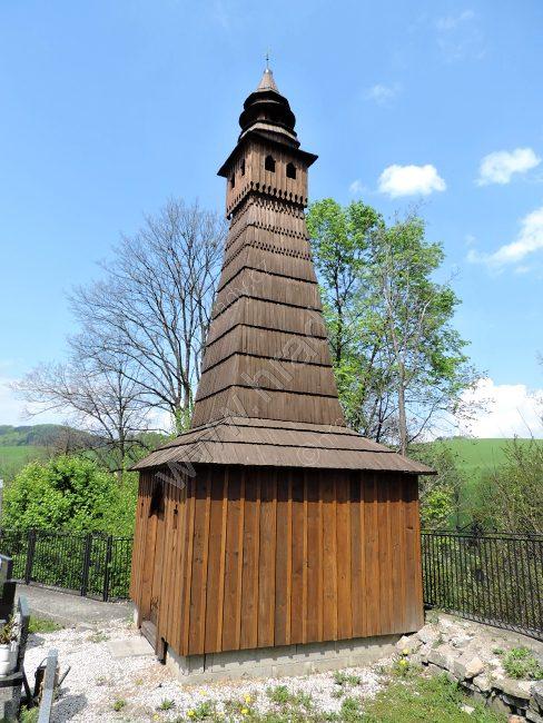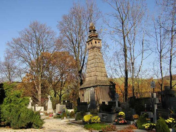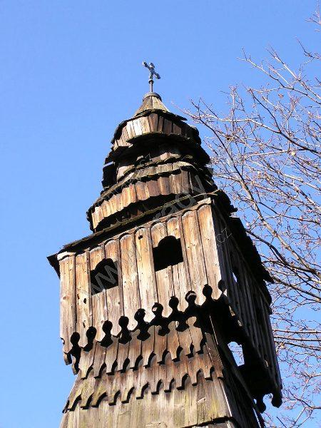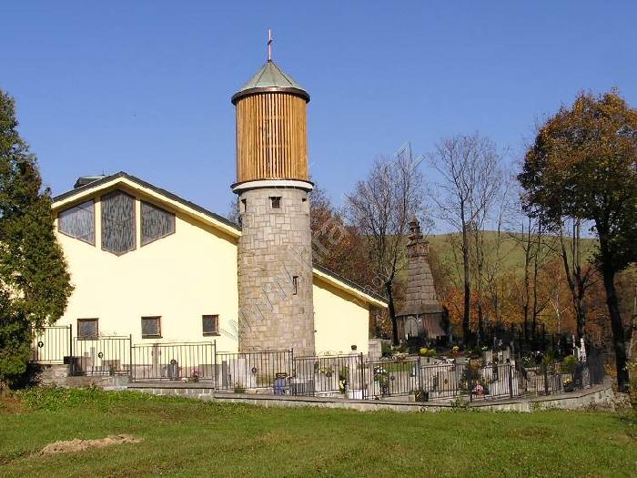 celkový pohled na novostavbu kostela a vzácnou zvonici v pozadí