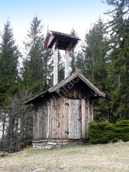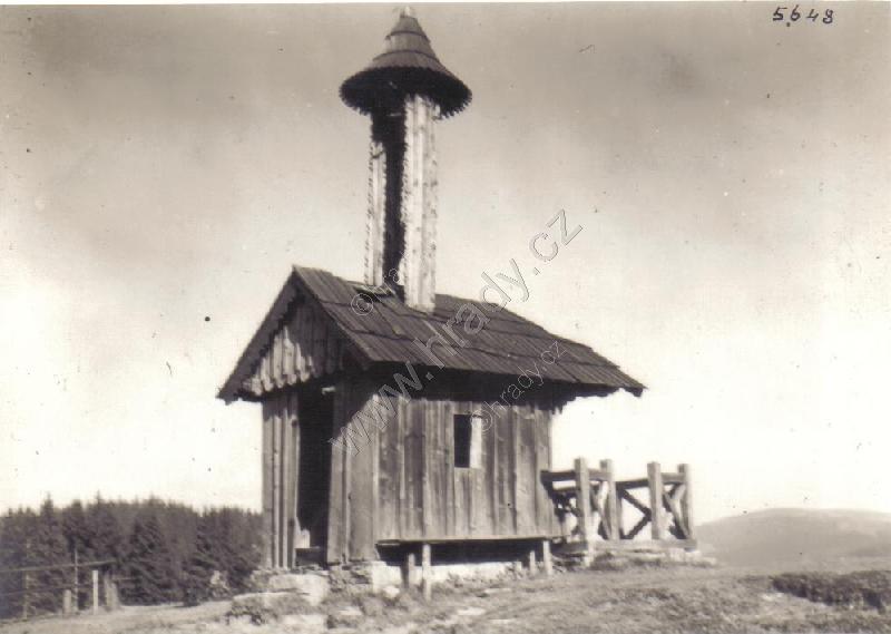 Fotografie původní zvoničky z počátku 20.století, která stávala na Bílém kříži u tehdejší útulny - soukr.sbírka IvoR